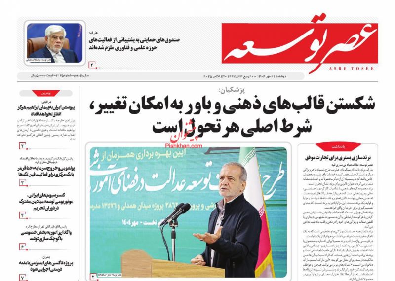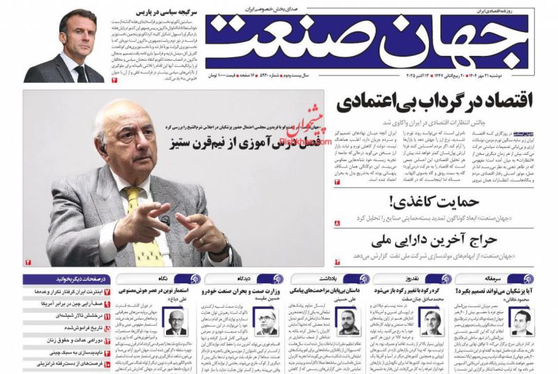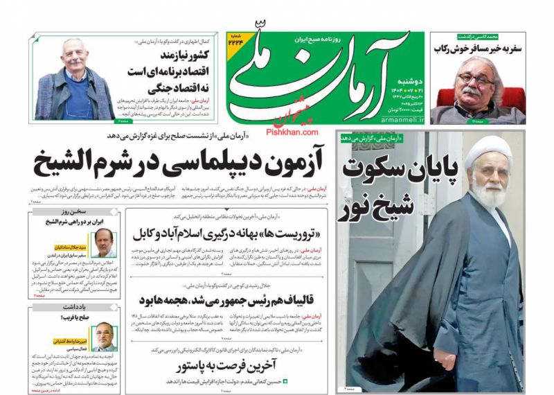 صفحه اول روزنامه ها 21 مهر 1404