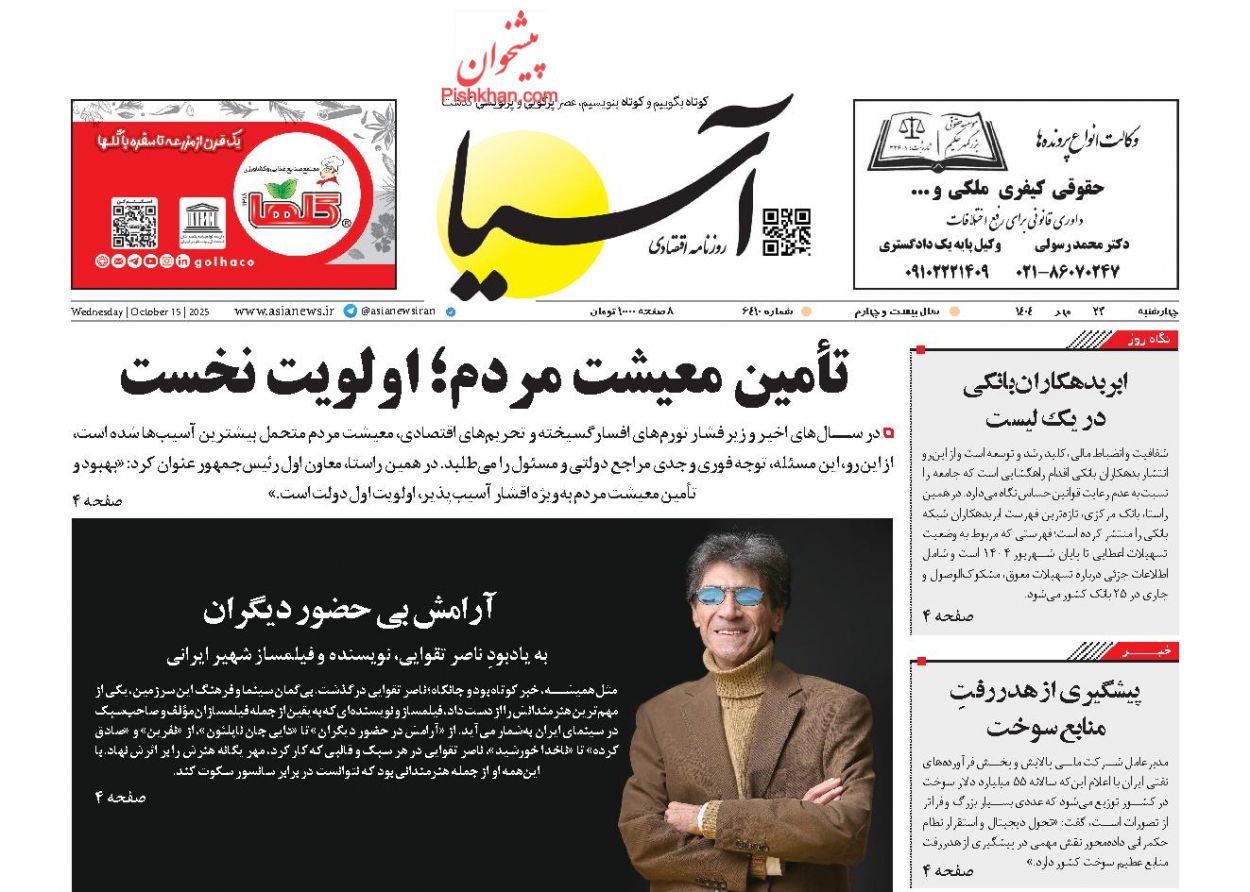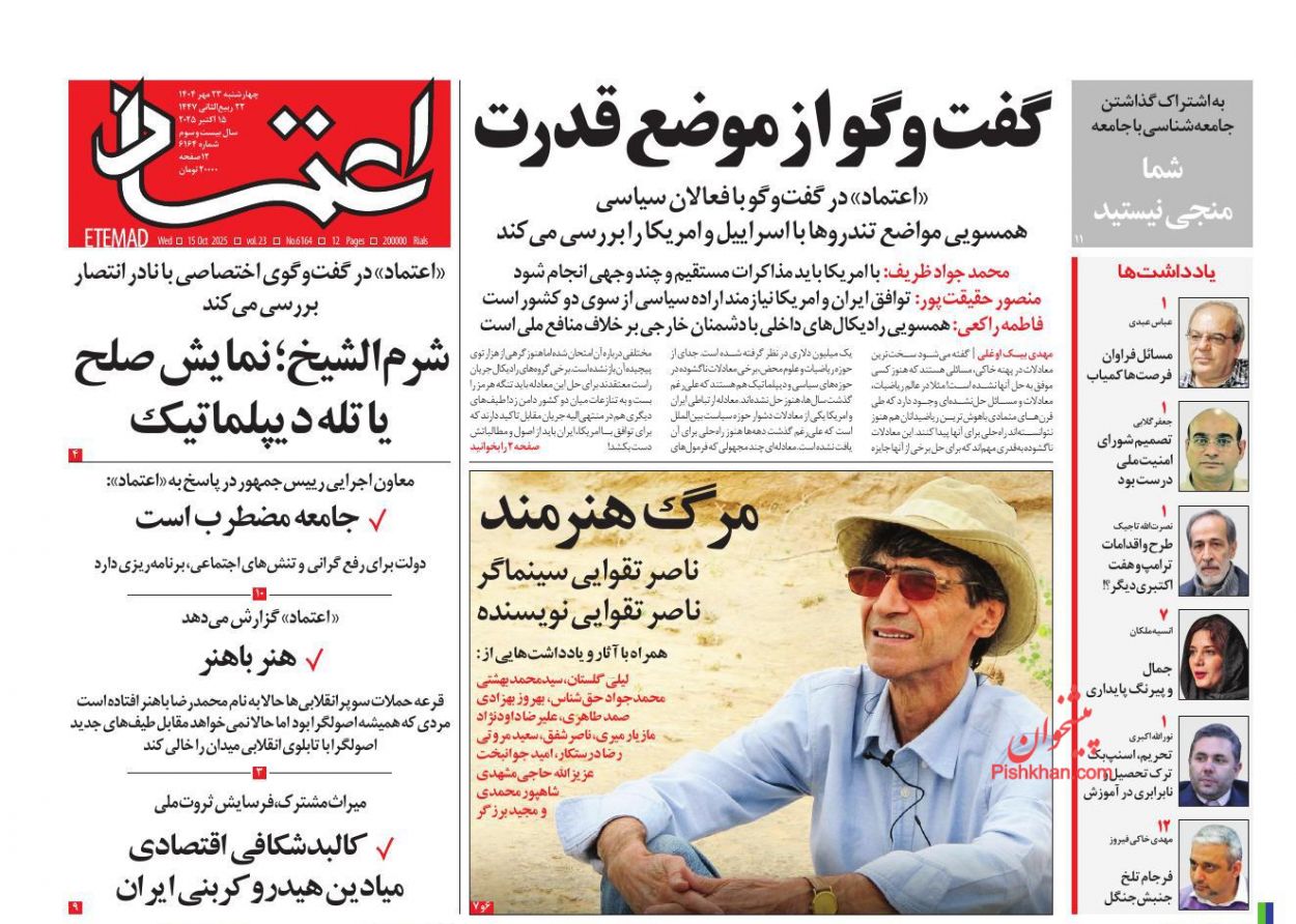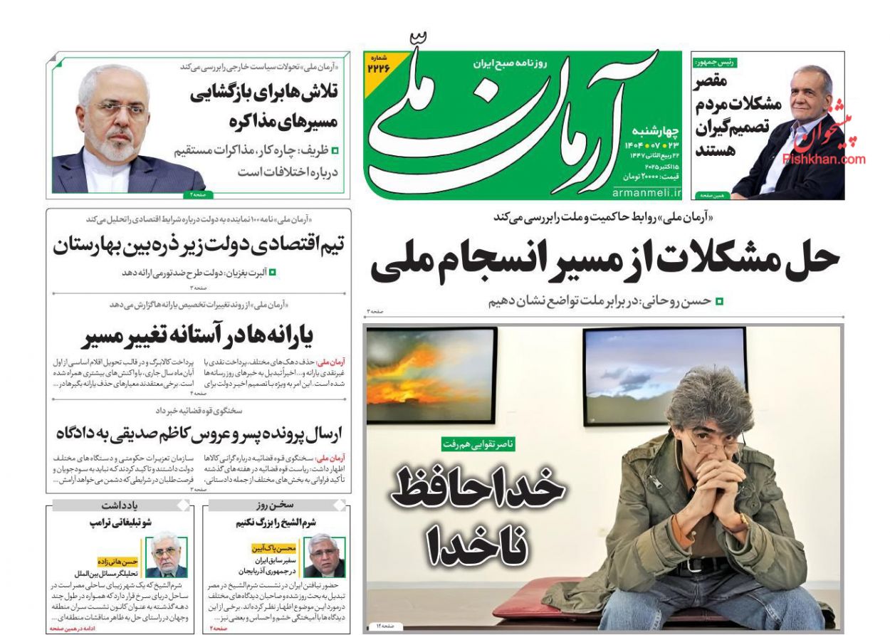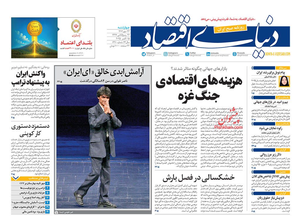 بازتاب_ مروری بر مهمترین عناوین روزنامههای امروز؛ از درگذشت ناصر تقوایی، کارگردان برجسته سینمای ایران تا سخنان حسن روحانی درباره سیاست خارجی کشور و دیگر تحولات روز.