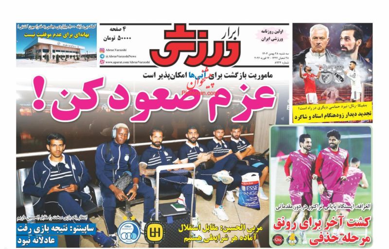 صفحه اول روزنامه ها 28 بهمن 1404