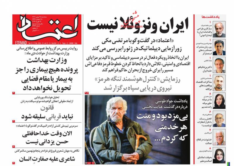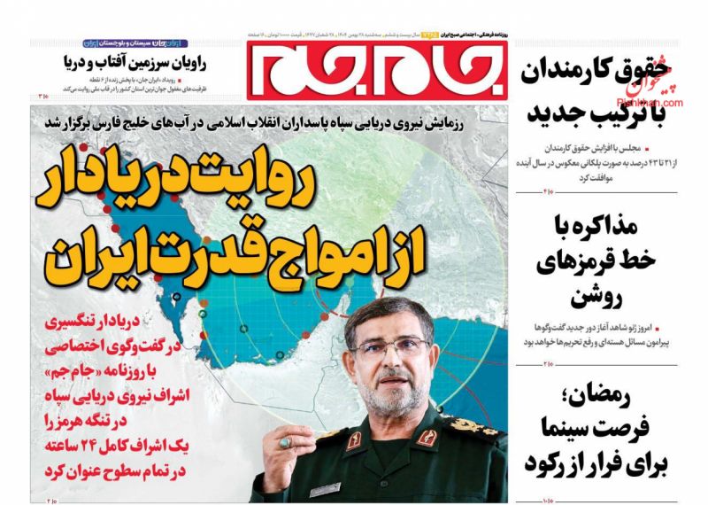 بازتاب_ روایت دریادار از امواج قدرت ایران، مانور کنترل تنگه هرمز، مذاکره با خط قرمزهای روشن، تن زخمی وطن و شام آخر اسکو یا ساپی از عناوین روزنامههای امروز کشورمان است.
