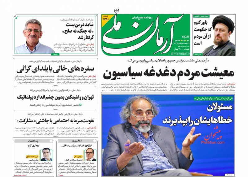 بازتاب_ هدف آمریکا از مذاکره تجزیه ایران است، رکوردشکنی بارشها در جنوب تشنه ایران، کوپن وزیر تمام شده و حذف پرسپولیس از جام حذفی از عناوین روزنامههای امروز است.