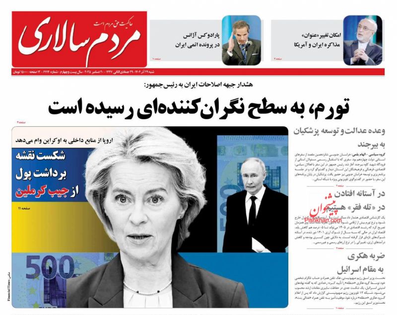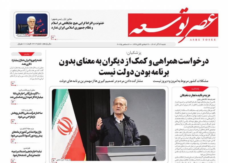 صفحه اول روزنامه ها 29 آذر 1404