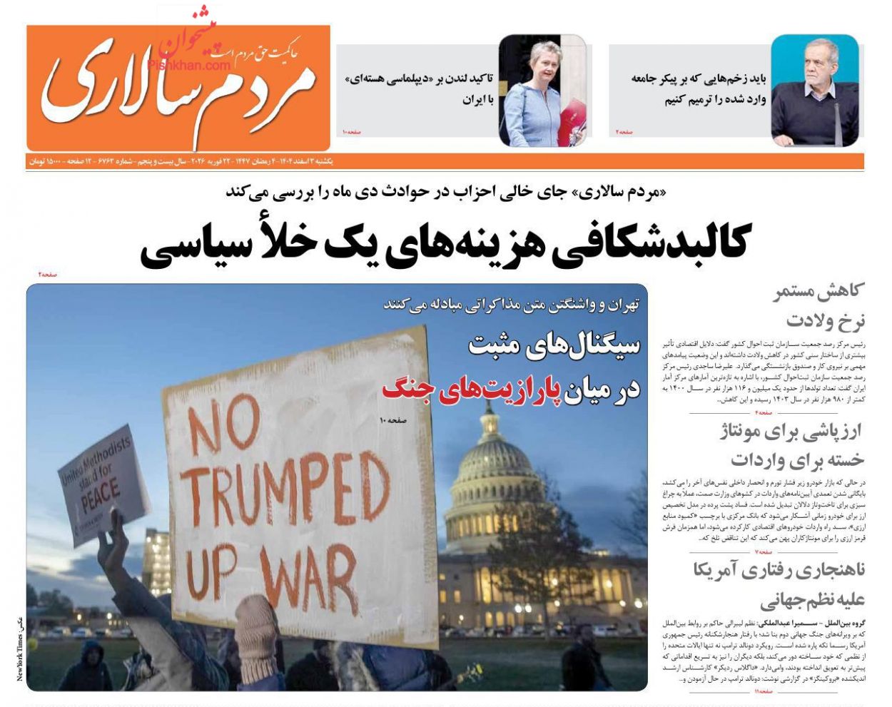 بازتاب_ کمک ۵ میلیارد تومانی رهبر معظم انقلاب برای آزادی زندانیان نیازمند، سردرگمی واشنگتن، بازار اسفند آرام و پررونق، تنش شریف و استقلال با مربی موقتتر مقابل مس از عناوین روزنامههای امروز کشورمان است.