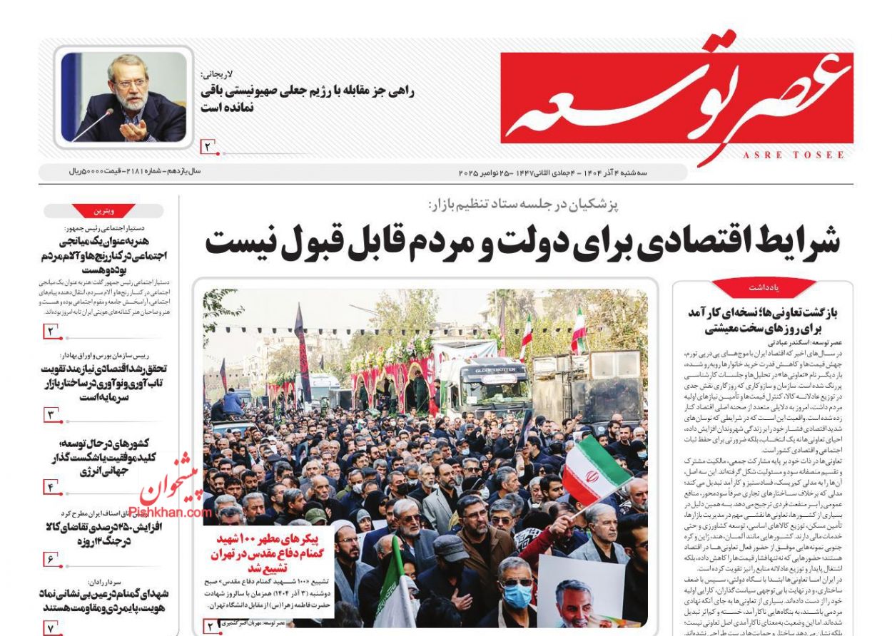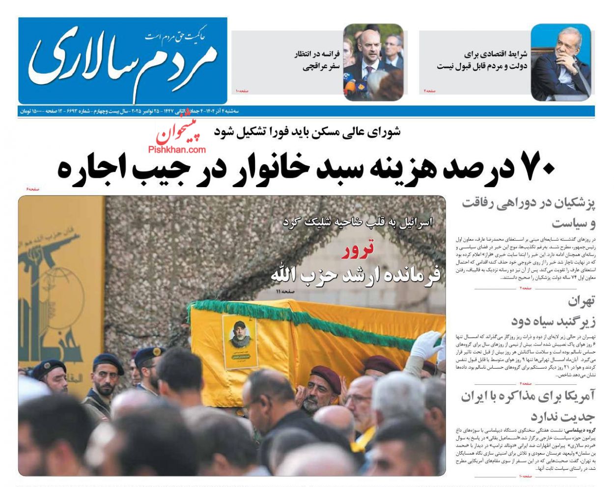 افزایش آلودگی هوا در اکثر استانها، بازتاب شهادت نفر دوم حزب الله لبنان و… از تیترهای مطبوعات امروز است.