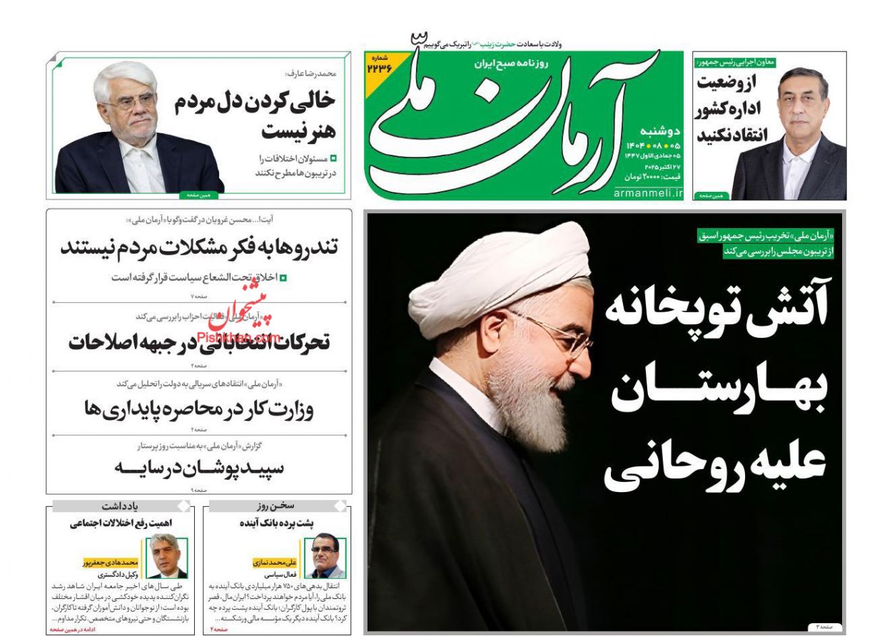 بازتاب_ در پی اظهارات اخیر حسن روحانی و محمدجواد ظریف درباره مسائل سیاست خارجی و برجام، رئیس مجلس و شماری از نمایندگان واکنش تندی نشان داده و سخنان آنان را مورد انتقاد قرار دادند. بازتاب این حملات، محور اصلی تیتر بسیاری از روزنامههای امروز شد.