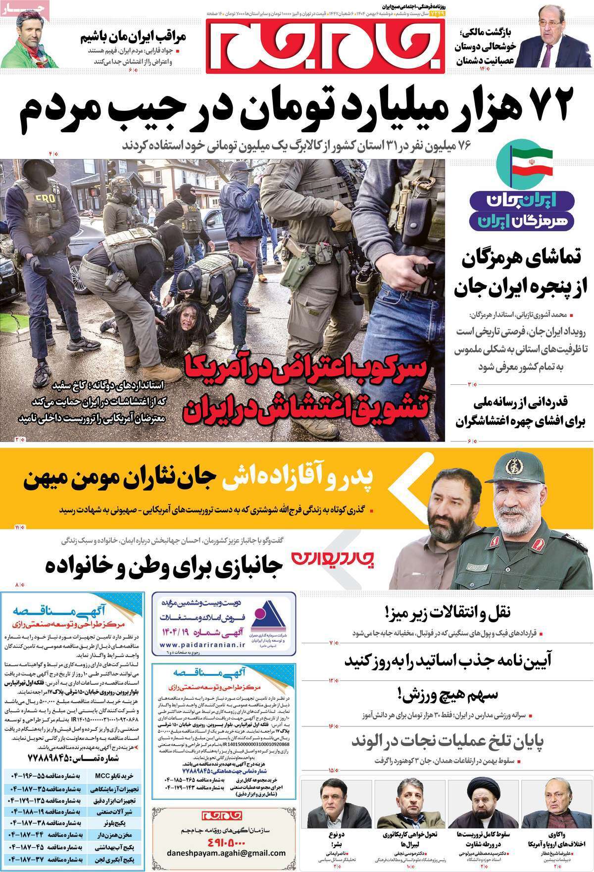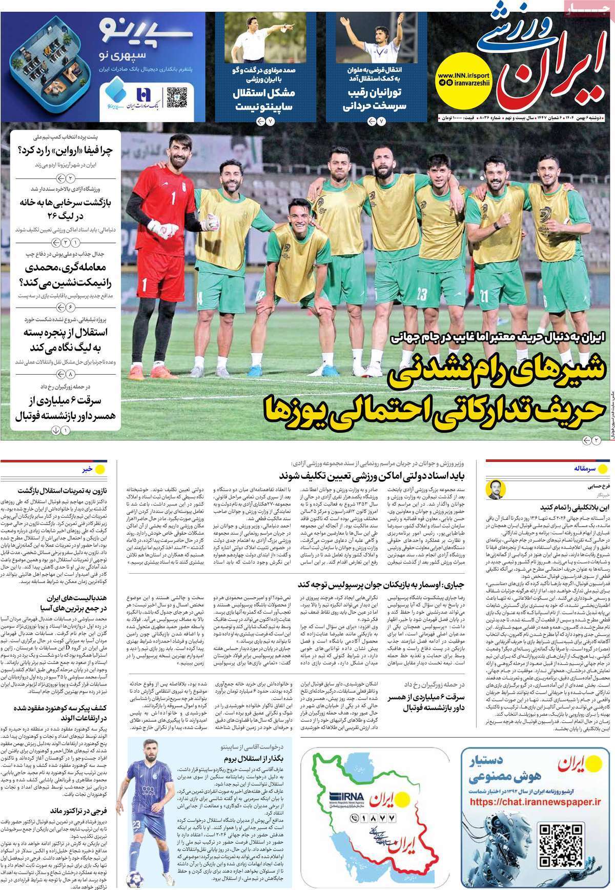 صفحه اول روزنامه ها 6 بهمن 1404