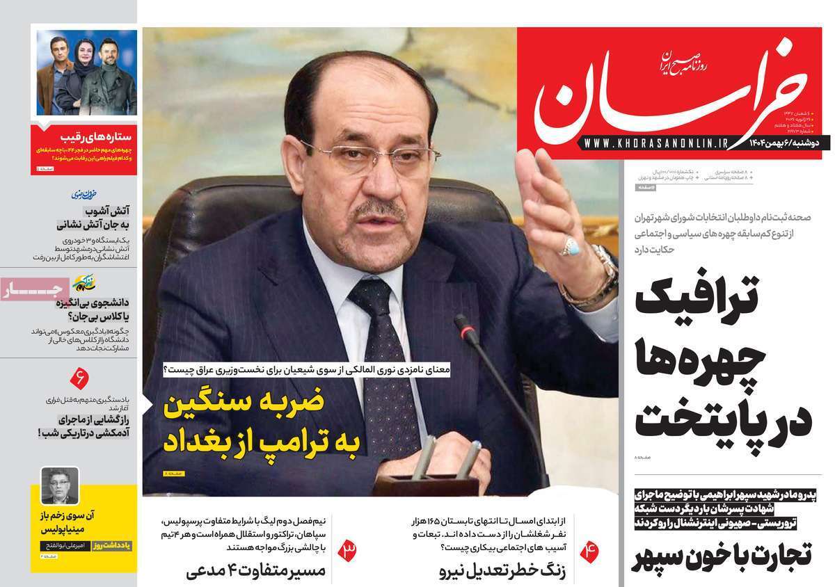بازتاب_ ضربه سنگین به ترامپ از بغداد، سرکوب اعتراض در آمریکا تشویق اغتشاش در ایران و هندوانههای در بسته در پرسپولیس از عناوین روزنامههای امروز کشورمان است.