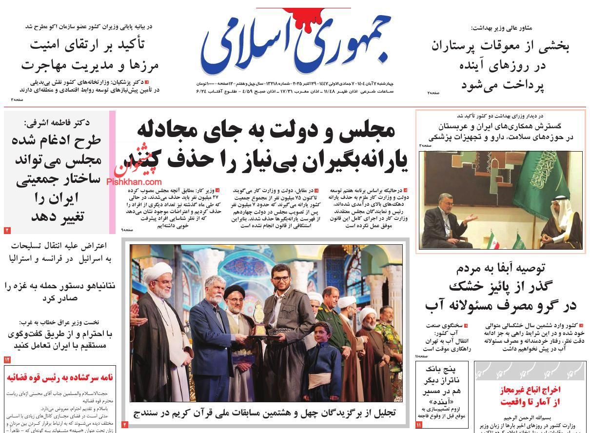 بازتاب_ اکو دور برگردان تحریم ، لزوم حذف یارانه بگیران بی نیاز ،سیگنال آتش بس تجاری چین و آمریکا و صلح قلابی بخشی از تیتر امروز روزنامههای کشور است.