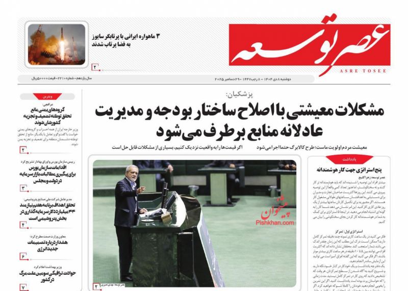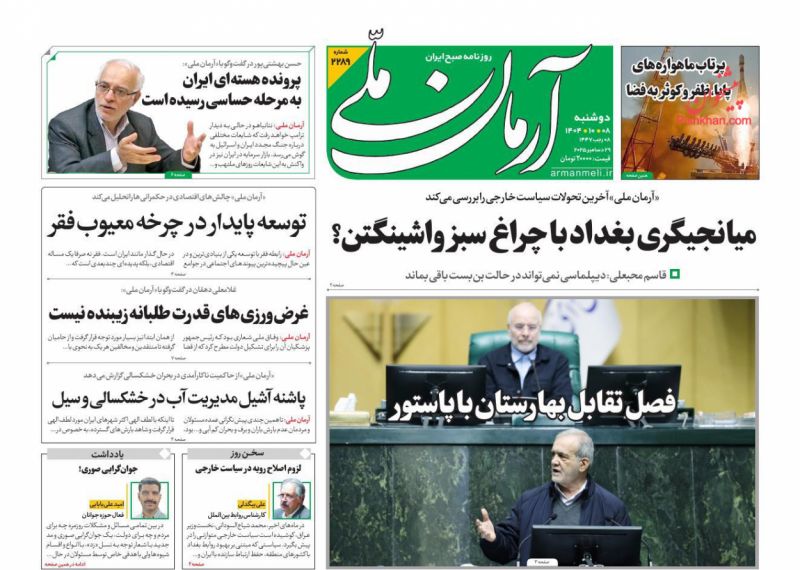 بازتاب_ چشم تیز ایران در فضا، مرکز توقف دلار کجاست و وضعیت قرمز آبی از عناوین روزنامههای امروز است.