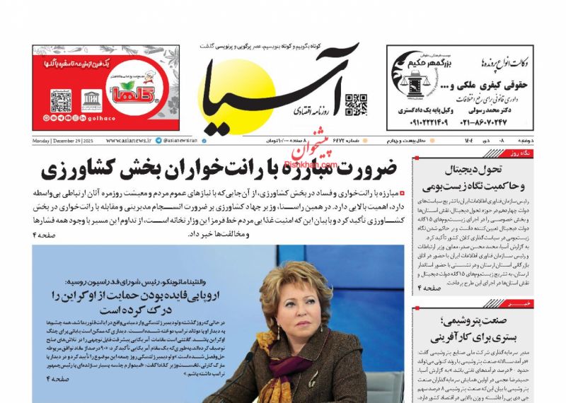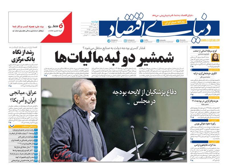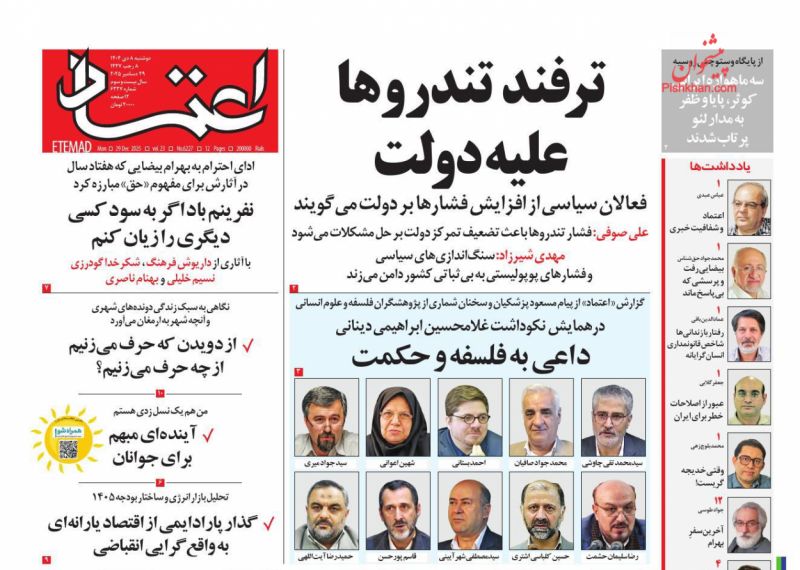 صفحه اول روزنامه ها 7 دی 1404