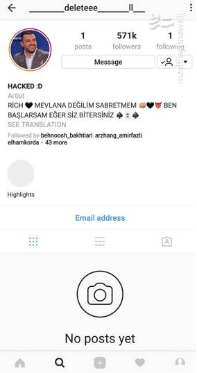 صفحه شخصی اشکان خطیبی در اینستاگرام هک شد.
