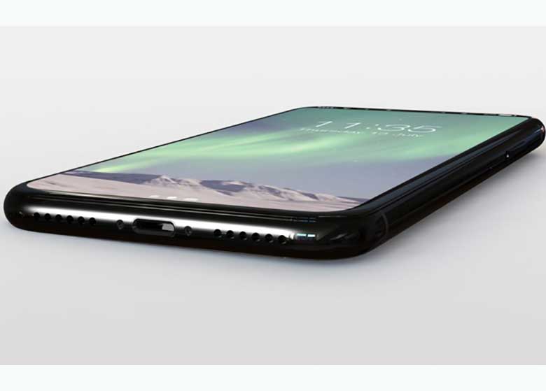 تصویر رندر بعدی نیز لبه‌ی پایینی آیفون ۸ را نمایش می‌دهد که نشان از پایبند بودن به سنت جدید اپل مبنی بر حذف جک هدفون ۳.۵ میلی‌متری در آیفون ۸ دارد. برخلاف گزارش‌های پیشین منتشر شده که احتمال استفاده از درگاه USB نوع C را مطرح کرده بودند، آیفون ۸ نیز همچنان به درگاه لایتنینگ وفادار است. همچون آیفون ۷، آیفون ۸ نیز از وجود بلندگوهای استریو بهره خواهد برد.