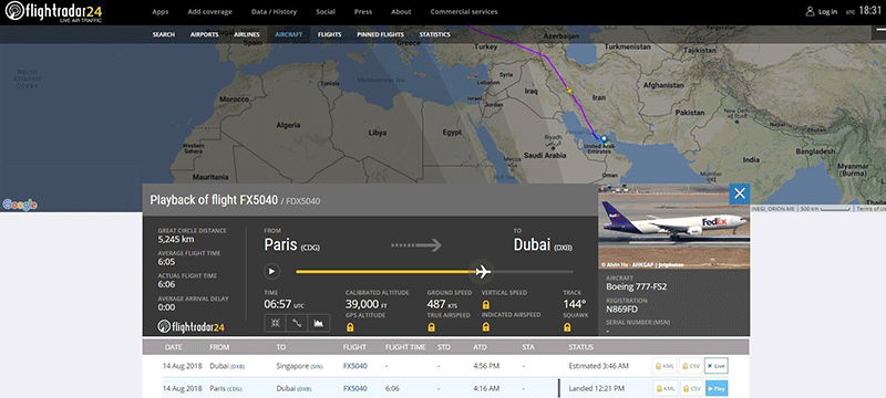 عبور هواپیمای بوئینگ ۷۷۷ شرکت آمریکایی FedEx با علامت ثبتی N869FD از آسمان کشورمان – ۲۳ مردادماه۹۷