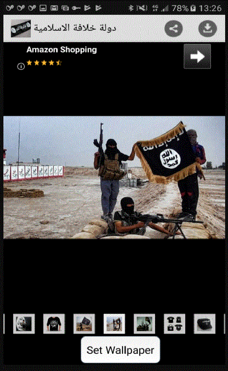 یکی از برنامه های کاربردی این عملیات که حاوی نرم افزارهای جاسوسی است شامل یک تصویر زمینه ویژه موبایل منقش به پرچم داعش است. در این تصویر نام داعش با کمی اختلاف به غلط تایپ شده و زیر این عکس نیز تعدادی گزینه وجود دارد.