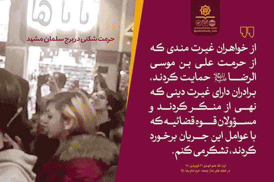 پایگاه اطلاع رسانی آیت الله علم الهدی؛ امام جمعه مشهد تصویر دختر بی حجابی را به عنوان عکسی از جشن جنجالی برج سلمان مشهد را با انتشار یک متن منتشر کرد.