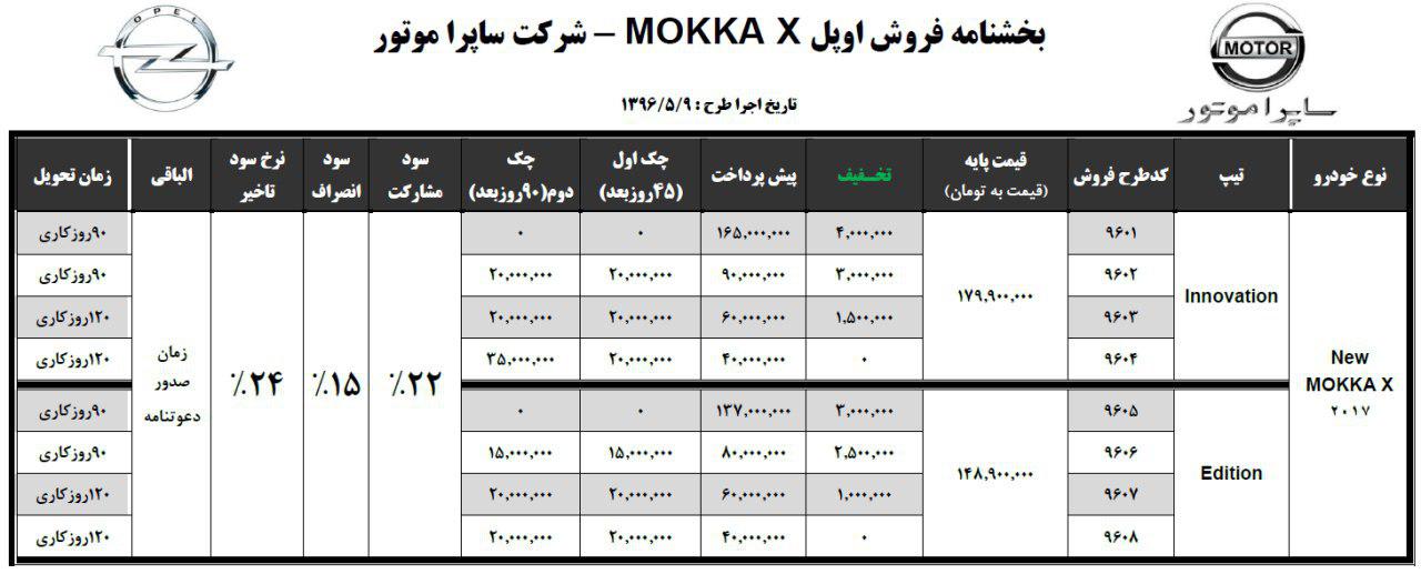 بخشنامه فروش اوپل موکا x در ایران – مرداد ۹۶: