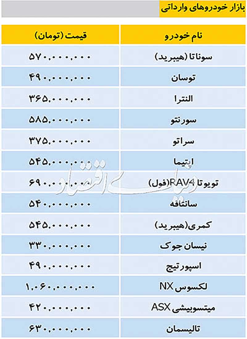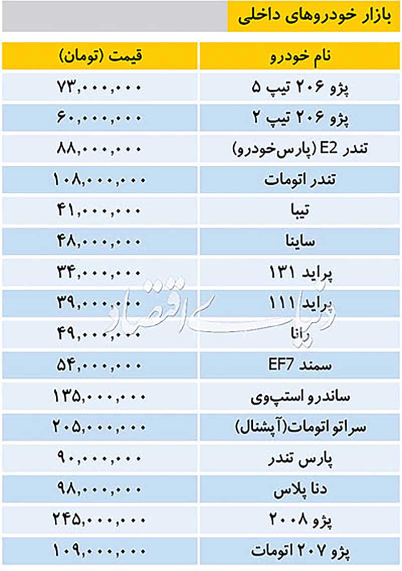 قیمت انواع خودرو در بازار امروز ۷ آذر ۹۷