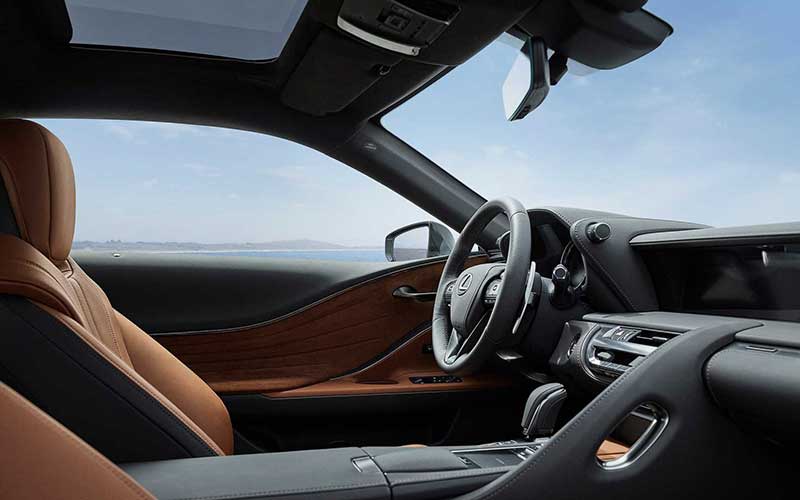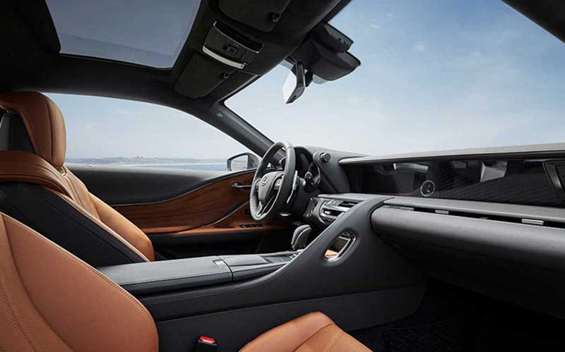 پوشش صندلیها از برترین جنس چرم لکسوس انتخاب و برای رودریها پوشش آلکانترا در نظر گرفته شده است. از دیگر تغییرات لکسوس LC 500 سری اینسپریشین، میتوان به رینگهای ۲۱ اینچی دورنگ و نشان رکاب مخصوص سری اینسپریشین در داخل کابین اشاره کرد. بدینترتیب، با هربار بازشدن درها، نشانی از خاصبودن لکسوس LC 500 سری اینسپریشن نمایان میشود.