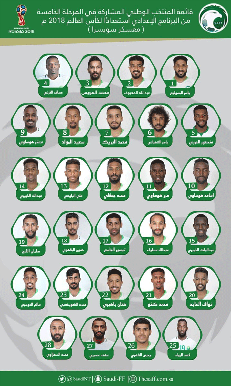 لیست بازیکنان تیم ملی عربستان برای مسابقات جام جهانی ۲۰۱۸ روسیه اعلام شد.