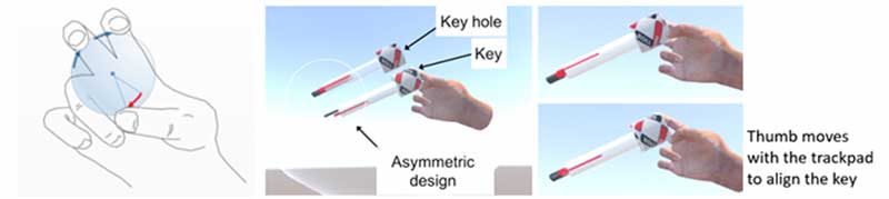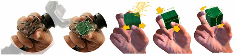 این دستگاه که برای پشتیبانی از گرفتن اشیاء مجازی با استفاده از انگشت شست و دو انگشت دیگر طراحی شده است، ارتعاشاتی به انگشتان دست میدهد که باعث حس کردن ویژگیهای شیء مانند بافت آن میشود.