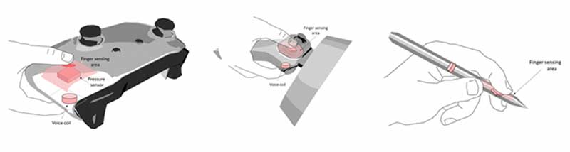 مایکروسافت نتایج تحقیقاتی را درمورد دستهی بازی با بازخورد لامسهای برای واقعیت مجازی منتشر کرد که امکان لمس اشیاء پلاستیکی بهصورت مجازی بهوسیلهی انگشتان را فراهم میکند.