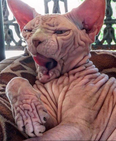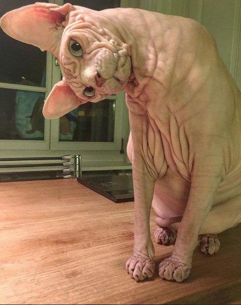 به گزارش ایسنااز توتبای ،این گربه پنج ساله خانگی در سوئیس زندگی می کند و دارای پوست چروکیده ای است که سر آن را به شکل حفره های مغز درآورده است.