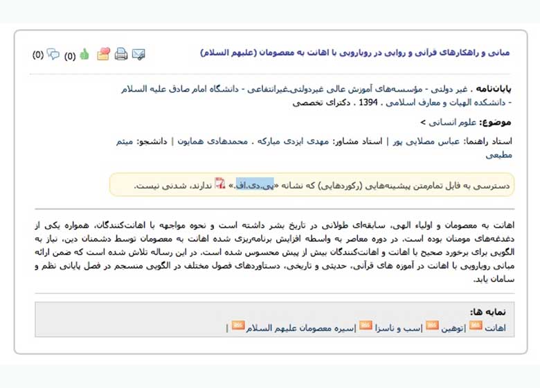 تصویر زیر مربوط به پایاننامه دکترای میثم مطیعی به نقل از سایت دانشگاه امام صادق است.