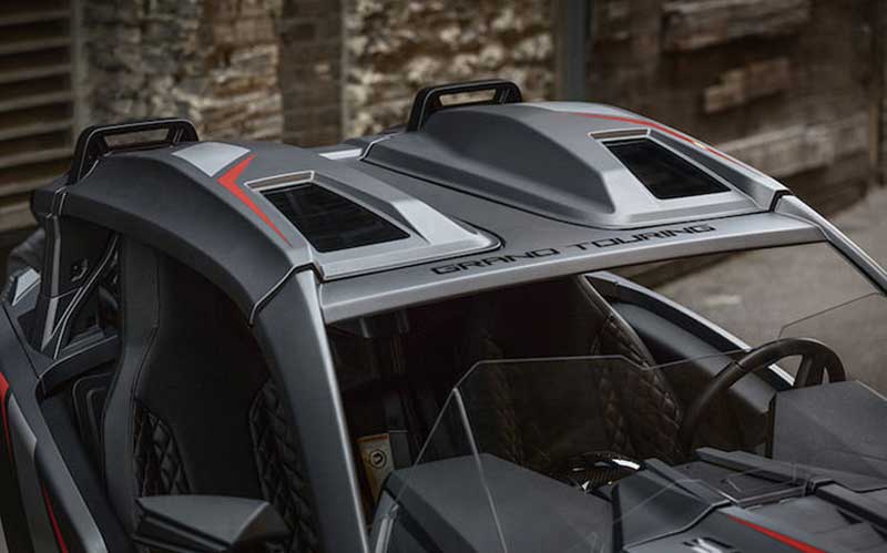 این سهچرخه الهامبخش سفر جسی کیسر سردبیر سابق رایداپارت در سال گذشته است و نسخه گرند تورینگ LE به طور کامل همه چیزهایی که برای مسافرت با آن مورد نیاز است، در خود فراهم میکند. از جمله این امکانات سقف خودرو با نام اسلینگشید، صندلیهای روکشدار وسیستم اطلاعاتی و سرگرمی این شرکت با نام راید کامند است. راید کامند بسیار شبیه سیستمی است که در موتورسیکلتهای توریستی هند یافت میشود و البته واقعا عملکرد مفیدی دارد. اسلینگشات پولاریس در دو رنگ قرمز و خاکستری موجود خواهد بود، و همراه با پکیج گرافیکی لیمیتد ادیشن عرضه میشود.