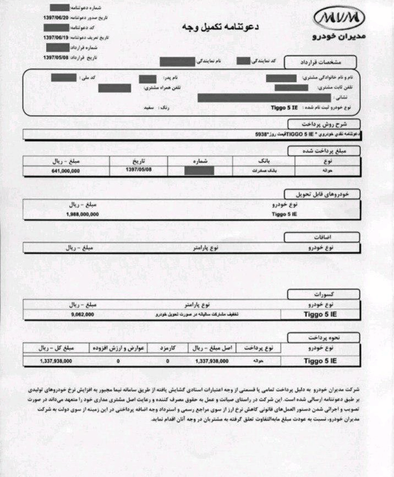 به گفته مخاطبان، بعد از مدت حدود ۴۵ روز، دعوت نامه‌ای برای تکمیل وجه خودرو برای آن‌ها ارسال شده که در آن، قیمت خودرو با افزایش قیمت عجیب ۵۵ درصدی ۱۹۸.۸۰۰.۰۰۰ تومان اعلام شده است.