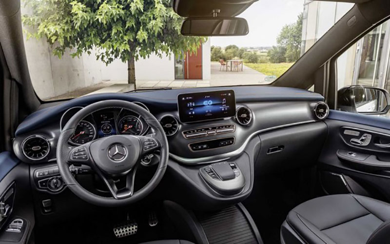 از امکانات درون کابین مرسدس بنز EQV میتوان به سیستم اطلاعات و سرگرمی MBUX اشاره کرد. در این مدل برخلاف دیگر مدلهای مرسدس بنز که از دو نمایشگر ۱۲.۳ اینچی استفاده میشود، از یک نمایشگر کوچکتر بهره گرفته شده است. زمان دقیق ورود به بازار و قیمت نهایی مرسدس بنز EQV هنوز مشخص نشده است.