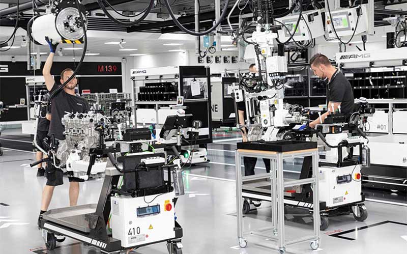 فرایند کلی ساخت پیشرانهها هنوز از فلسفهی “یک انسان، یک پیشرانه” پیروی میکند. در روش جدید، فرایند مونتاژ قطعات در هر مرحله بهصورت الکترونیکی ضبط میشود و میزان گشتاور وارده برای بستن پیچها ثبت میشود. روش جدید در کاهش زمان تولید و بهبود ارگونومی کارکنان خط تولید تاثیر بهسزایی خواهد داشت. بهگفتهی الکساندر کرز، مدیر خط تولید پیشرانهی M139، روش جدید بهمیزان ۲۰ تا ۲۵ درصد در زمان تولید صرفهجویی میکند. درنتیجه، تیم AMG با کارکردن دو شیف شبانهروزی، میتواند ۱۴۰ پیشرانه در طی ۲۴ ساعت تولید کند. اولین خودرویی که از پیشرانه بهره میبرد، مدل A45 است. پس از آن، قدرتمندترین پیشرانهی ۴ سیلندر در مدلهای CLA 45 و GLA 45 هم نصب میشود.