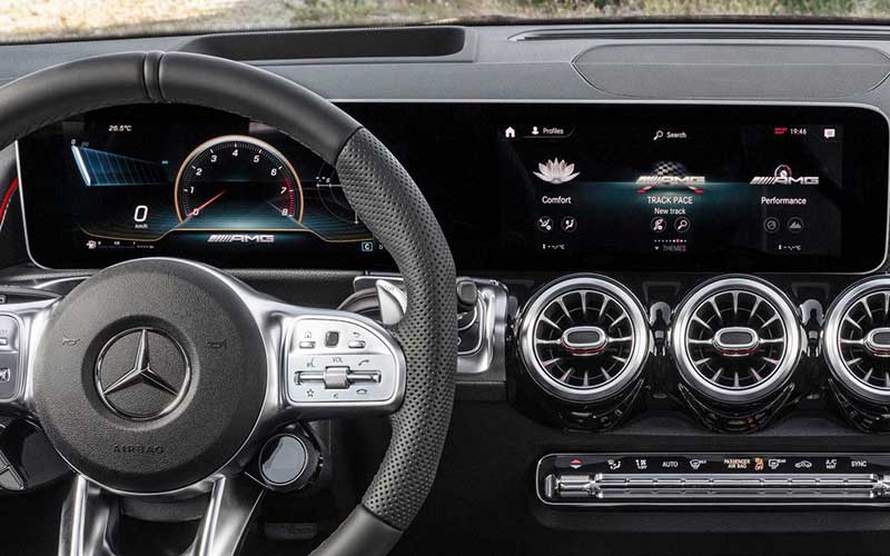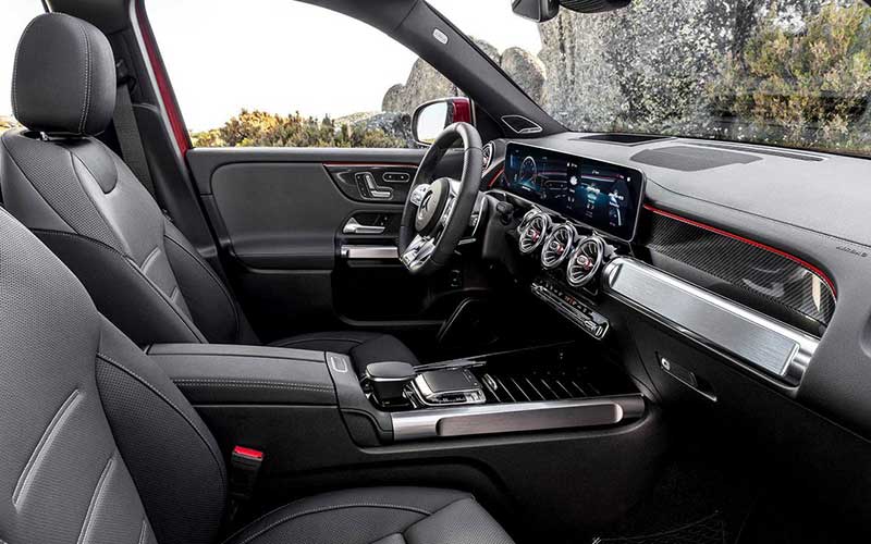درون کابین GLB 35 امکاناتی مانند سیستم اطلاعات و سرگرمی MBUX، نمایشگر مرکزی بزرگ و صفحهنمایش لمسی روی کنسول و کلیدهای لمسی روی فرمان وجود دارند. روی صندلی و داشبورد نشان AMG دیده میشود که نمای داخلی را کاملا از مدل GLB 250 متمایز میکند. مرسدس AMG GLB 35 اواخر سال ۲۰۲۰ به بازار جهانی میرسد و قیمت نهایی این مدل با نزدیکشدن به زمان عرضه، اعلام خواهد شد.