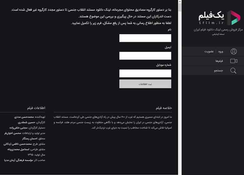 صفحه فروش مستند انقلاب جنسی روز گذشته توقیف شده بود