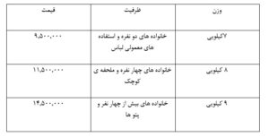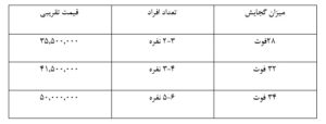 ♦ توجه کنید قیمت های موجود در جدول حدودی میباشد و ممکن است متغییر باشد