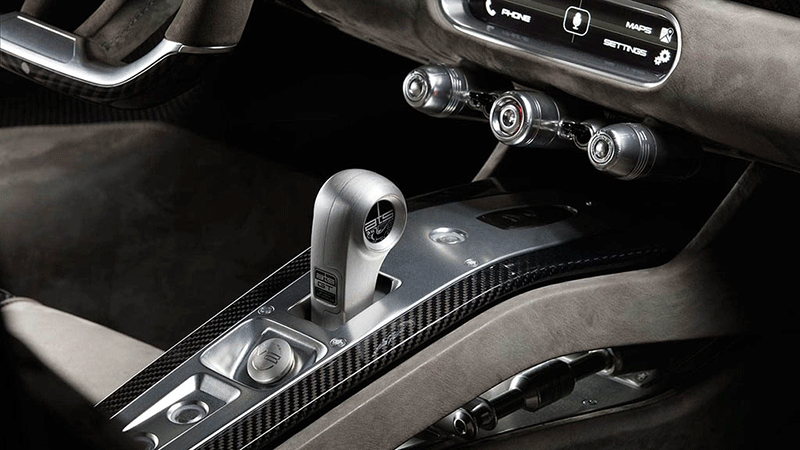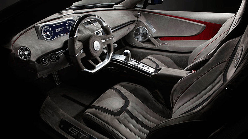 داخل کابین شاهد طرح بسیار سادهای هستیم. بجای استفاده از صفحات نمایش بزرگ که هماکنون در خودروهای مدرن دیده میشوند شاهد دو اهرم روی داشبورد برای انتخاب حالتهای رانندگی و دیگر گزینهها هستیم. همچنین دو سوئیچ باعث بلند شدن بال عقب و انتخاب حالتهای دستی یا اتوماتیک گیربکس میشوند.