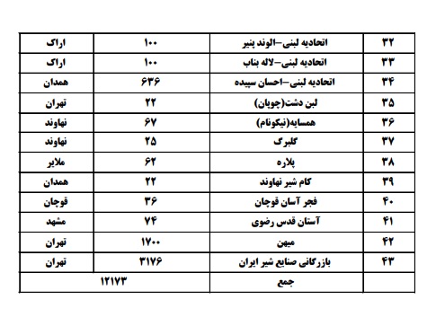 به نوشته دنیای اقتصاد، طبق آخرین آمار به نقل از معاونت امور دام وزارت جهادکشاورزی ، مقدار موجودی شیر خشک در کشور حدود ۵۳ هزارتن می باشد از سوی دیگر میزان مورد نیاز جهت ذخیره استراتژیک به گفته انجمن صنایع لبنی ایران ۱۵ هزارتن می باشد. با این حساب بیش از ۳۵ هزار تن شیر خشک می تواند از کشور خارج شود بدون آنکه موازنه تولید شیر خام و لبنیات بهم بخورد.