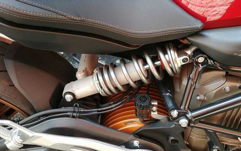 تقسیم وزن روی فرمان راضیکننده است؛ به همین دلیل، لرزشی در فرمان SR/F حس نمیشود. با اینکه شهر تورنتو دستاندازهای زیادی دارد، موتورسیکلت Zero با راحتی کامل از پسِ دستاندازهای مسیر برمیآید. فنرهای SR/F ساخت Showa هستند و نرمی خیلی خوبی دارند. حالا این مزیت را با لرزشنداشتن موتور نیز ترکیب کنید تا ببینید SR/F چقدر موتورسیکلت راحتی است.