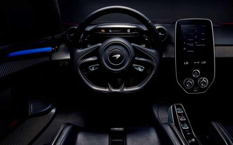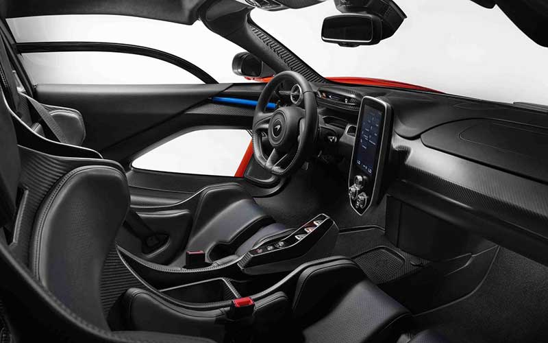 طراحی کابین مملو از فیبر کربن است و در عین ساده بودن، با تجهیزات رفاهی و امکاناتی چون سیستم سرگرمی و اطلاعاتی، دوربینهای دید عقب، نمایش اطلاعات فنی سیستم موجود در مدل 720S و سیستم صوتی مجهز است. تمام صندلیهای ۵۰۰ نسخهی در نظر گرفتهشده از مکلارن سنا، کاملا بر اساس سلیقه و سفارش مشتریان طراحی و دوخته خواهند شد.