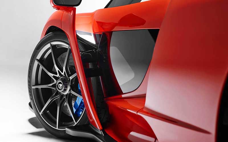 با اینکه قضاوت در مورد طراحی و ظاهر خودرو سلیقهای است؛ اما باید اقرار کرد که مکلارن سنا طراحی غیر معمولی دارد؛ دلیل عمدهی این فرم، تمرکز تیم مهندسی مکلارن بر تولید سوپراسپرتی با بدنهی تماماً آیرودینامیک و رویکرد «اولویت با عملکرد بهتر» است که در عین کاهش نیروی مقاومت هوا، به سیستم خنککننده نیز کمک میکند. با نگاهی کوتاه به دیفیوزر دوگانهی عقب، دریچهی هوای بزرگ که به کف خودرو هدایت شده است و بالهی بزرگ عقب، میتوان مطمئن بود که مکلارن سنا، ساعتهای زیادی در آزمایشهای تونل باد سپری کرده است. از دیگر نکات برجستهی بدنه و ظاهر این سوپراسپرت، میتوان به پنل شیشهای موجود در هر دو در و ترمزهای سرامیک کربن که در آغوش تایرهای برند پیرلی (Pirelli) جا خوش کردهاند و ساخت هر کدام از آنها تا ۷ ماه زمان میطلبد، اشاره کرد.