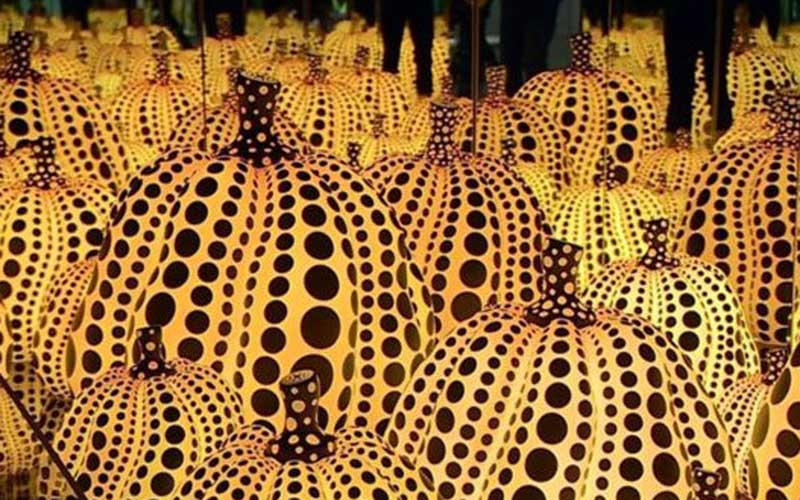 کیوساما متولد سال ۱۹۲۹ در ژاپن به خاطر نقاشی‌ها و چیدمان‌های مجسمه‌گونش که طرحی از خالخال‌های‌ متراکم و بی‌پایان خلق می‌کند، شهرت دارد. آثار این هنرمند ژاپنی بر هنر پاپ در دهه‌های ۱۹۵۰ و ۱۹۶۰ تاثیرگذار بوده است و از لحاظ فروش خیلی جلوتر از هنرمندان زن دیگر است.