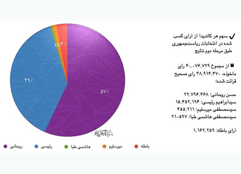 ۱۱.۳۲: سهم هر کاندیدا از آرای کسب شده در انتخابات ریاستجمهوری دوازدهم طبق مرحله دوم نتایج