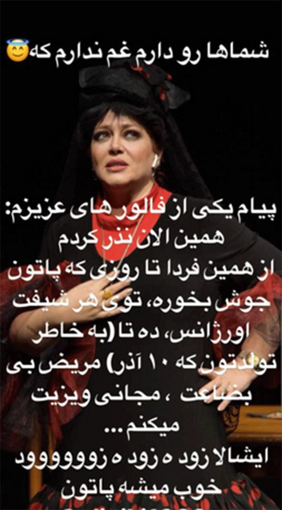 بهاره رهنما با انتشار یک استوری، از نذر عجیب یکی از طرفدارانش خبر داد و نوشت: شماها رو دارم غم ندارم که.