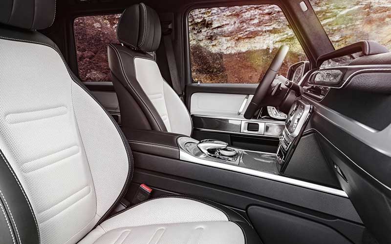 در مقایسه با نسل قبل، G کلاس جدید با ۵ سانتیمتر طول بیشتر و حدود یک سانتیمتر افزایش ارتفاع همراه است؛ درحالیکه عرض خودرو ۱۲ سانتیمتر بیشتر شده است. با این اوصاف، راحتی سرنشینان خصوصا در ردیف عقب، بهبود چشمگیری دارد و مثل گذشته، خشک و تنگ نیست؛ چراکه فاصله محورها نیز ۴ سانتیمتر افزایش داشته و در مقایسه با مدل قبلی، ۱۵ سانتیمتر به فضای بین صندلیهای عقب و جلو، اضافه شده است. از نظر زیبایی کابین و کیفیت صندلیها هم G کلاس جدید فراتر از گذشته به نظر میرسد.
