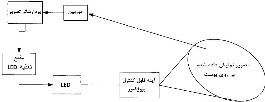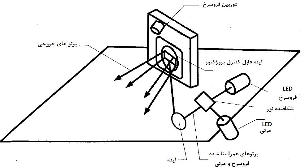 در این اختراع از پرتوهای دو دیود گسیلنده نور مرئی و فروسرخ که از طریق یک اپتیک همراستاسازی بر روی یک آینه قابل کنترل ویدئو پروژکتور هدایت میشود، بهره گرفته شده است.
