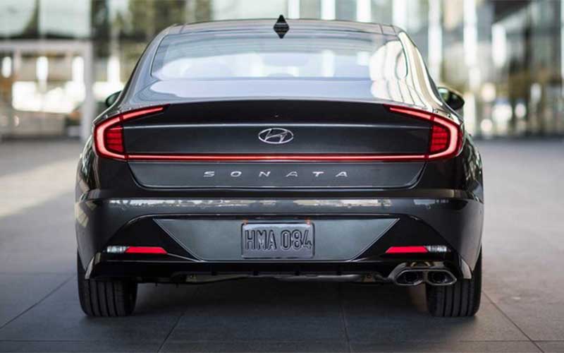 چراغهای عقب سوناتا در نگاه اول ساده به نظر میرسند اما جزئیات زیادی دارند. این دو چراغ توسط یک خط به همدیگر وصل شدهاند. قسمت بالای چراغها نیز به طرز ماهرانهای تا روی صندوق عقب ادامه پیدا کرده است. خطوط عقب این خودرو بهگونهای هستند که عرض خودرو را بیش از آنچه که هست نشان میدهند. به این نکته نیز اشاره کنیم که سوناتا از نظر آیرودینامیکی نیز شرایط خیلی خوبی دارد و ضریب آیرودینامیک آن فقط ۰.۲۷ است.