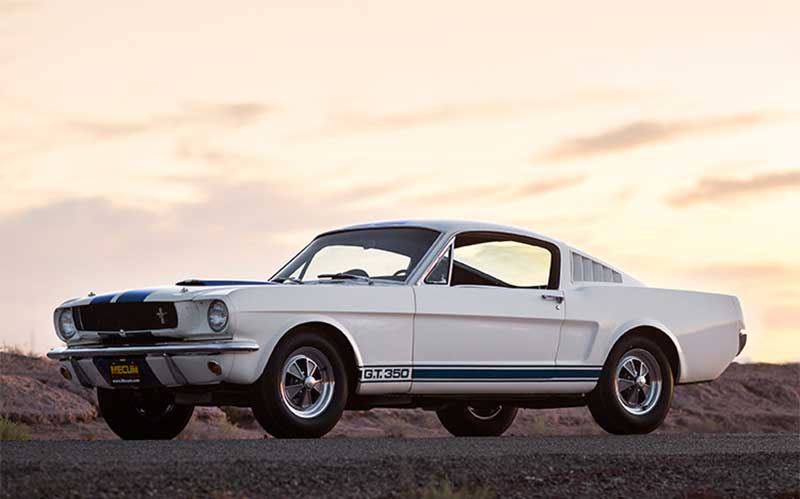 کرول شلبی نقش مهمی در افزایش محبوبیت موستانگ داشت. زمانیکه شلبی برای اولینبار محصول جدید فورد را دید، تنها به ارتقاء و تیونینگ موستانگ فکر میکرد. فورد موستانگ خودرویی عضلانی نبود، بنابراین ابعاد و وزنش کوچکتر و کمتر از نمونههای تمام عضلانی آمریکایی بود؛ ازطرفی شلبی که تولید مدل کبرا را در کارنامه داشت، کاملاً با پیشرانهی فورد آشنا بود. اولین مدل از شلبی موستانگ تاریخ، سال ۱۹۶۵ با کد GT350 تولید شد؛ این مدل از پیشرانهی ۸ سیلندر V شکل ۴/۷ لیتری استفاده میکرد که بهعنوان آپشن در فورد موستانگ فروخته میشد؛ قدرت شلبی GT350 بهلطف کاربراتور سفارشی و بزرگتر به ۳۰۶ اسببخار میرسید که ۳۵ اسببخار بیشتر از موستانگ V8 استاندارد بود. مهندسی شلبی تنها در افزایش قدرت پیشرانه خلاصه نمیشد و GT350 با تنظیمات سفارشی سیستم تعلیق و فرمان همراه بود. رینگهای سفارشی ۱۵ اینچی و طرح سفید و آبی بدنه از دیگر تغییرات شلبی برای موستانگ بودند. شلبی GT350 از لحاظ عملکرد فنی بین دو کلاس خودروهای جادهای و مسابقهای قرار میگرفت؛ این مدل ماندگار با قیمت پایه ۴,۵۴۷ دلار (حدود ۳۶,۰۰۰ دلار به نرخ و تورم ۲۰۱۹) تنها به نمایندگیهای معتبر فورد فروخته میشد.