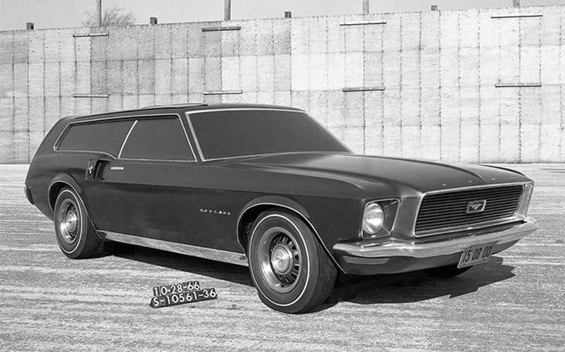 پس از گذشت دو سال از تولید موستانگ و حذف طرح سدان، تعدادی از مدیران فورد بهفکر عرضهی مدلی جادارتر افتادند. تیم طراحی فورد، مدل شوتینگ بریک با دو در را پیشنهاد دادند. اما باز هم تنها یک مدل آزمایشی از موستانگ شوتینگ بریک ساخته شد و این پروژه لغو شد. مدل پروتوتایپ موستانگ استیشن در طول ۱۱ ماه در شرکت ایتالیایی Construzione Automobili Intermeccanica طراحی و تولید شد؛ مقامات فورد تولید این مدل را بهدلیل تمرکز بیشتر بر نسخههای جدید کوپه، فستبک و کروک تأیید نکردند.