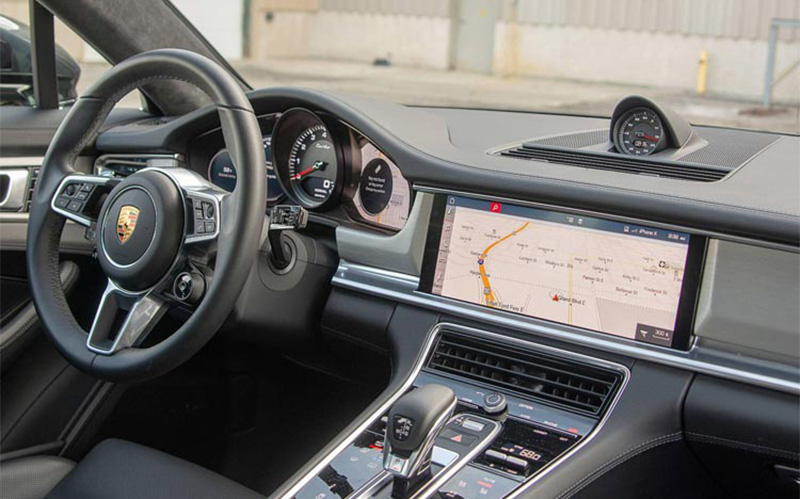 صفحه‌ی لمسی ۱۲ اینچی پانامرا در نوع خود جزو بهترین‌‌ها است و با واکنش سریع به همراه انیمیشن‌های تندوتیز، تجربه‌ی لذت‌بخشی را به وجود می‌آورد. لمس خازنی، دکمه‌های متعدد در بخش پایینی نمایشگر، استاندارد اپل کارپلی (فاقد اندروید اتو) همگی نمره‌ی خوبی در بخش ظاهر و عملکرد این بخش کسب می‌کنند.