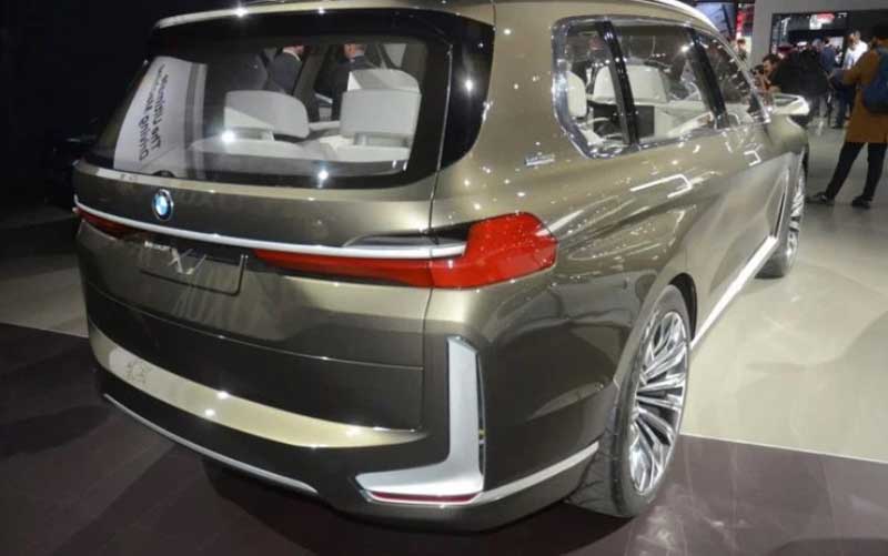 خودروی x7 که با کد G07 شناخته می‌شود، بسیاری از عناصر خود را از مدل مفهومی خود قرض گرفته و غرابت زیادی با آن دارد. در سپر جلو دریچه‌های مورب شکل و نوارهای کرومی در قسمت پائین درها، چراغ‌های باریک لیزری و درب موتور مخروطی از اشتراکات این خودرو با مدل مفهومی‌اش است. اما تماشای این خودرو از نمای عقب تضادهای بیشتری را با مدل مفهومی نشان می‌دهد. در این بخش خودرو می‌توانیم لامپ‌های LED، نوار افقی کرمی، اگزور دو بخشی و در انتهایی SUV را با اندکی اختلاف از نمونه مفهومی ببینیم.