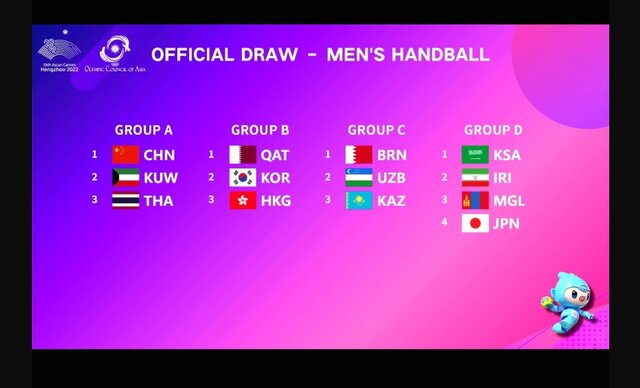 قرعهکشی هندبال مردان بازیهای آسیایی امروز (پنجشنبه) انجام شد و تیم ملی ایران در گروه D با تیمهای عربستان، مغولستان و ژاپن همگروه شد.